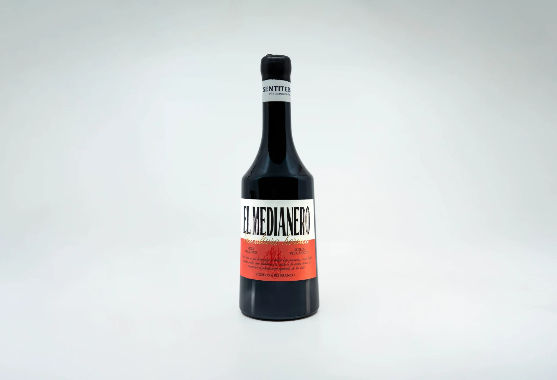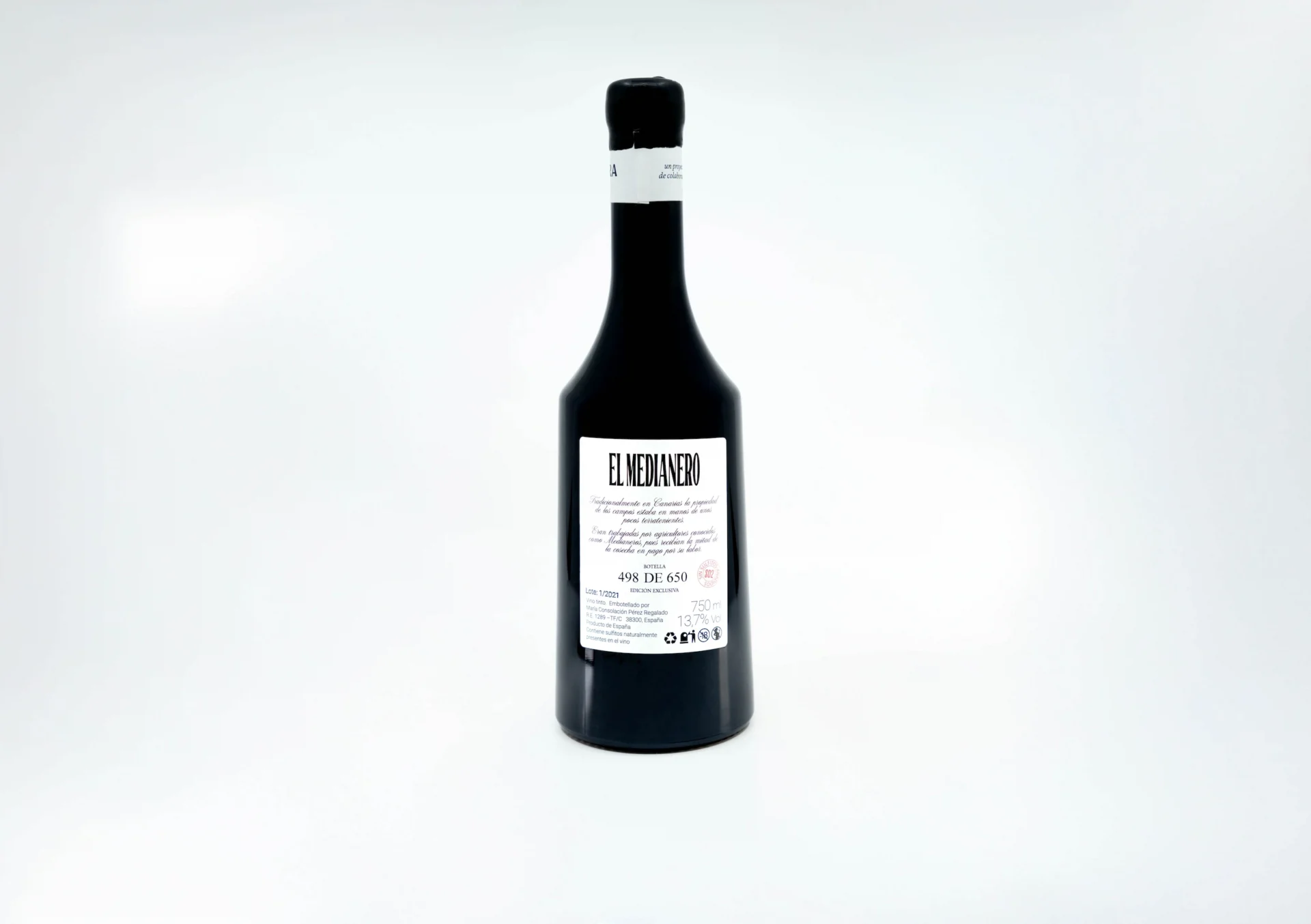 100% Listán Negro, macerado 10 días con sus pieles y envejecido un año en barrica de roble francés.